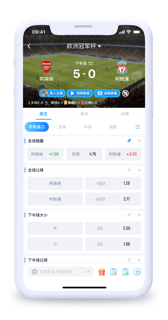 AKS包網APP,業內最高賠率。覆蓋世界各地賽事,讓球、大小、半全場、波膽、單雙、總入球、連串過關等多元競猜。更有動畫直播、視頻直播,讓您輕鬆體驗聊球投注,樂在其中。